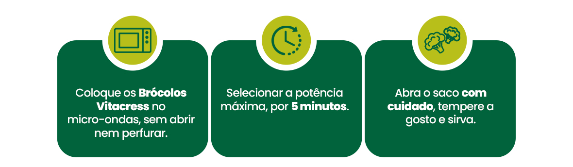 Os nossos brócolos, ricos em Vitamina C, são lavados e estão prontos a cozinhar a vapor, no micro-ondas ou na panela. Práticos, saborosos e nutritivos!