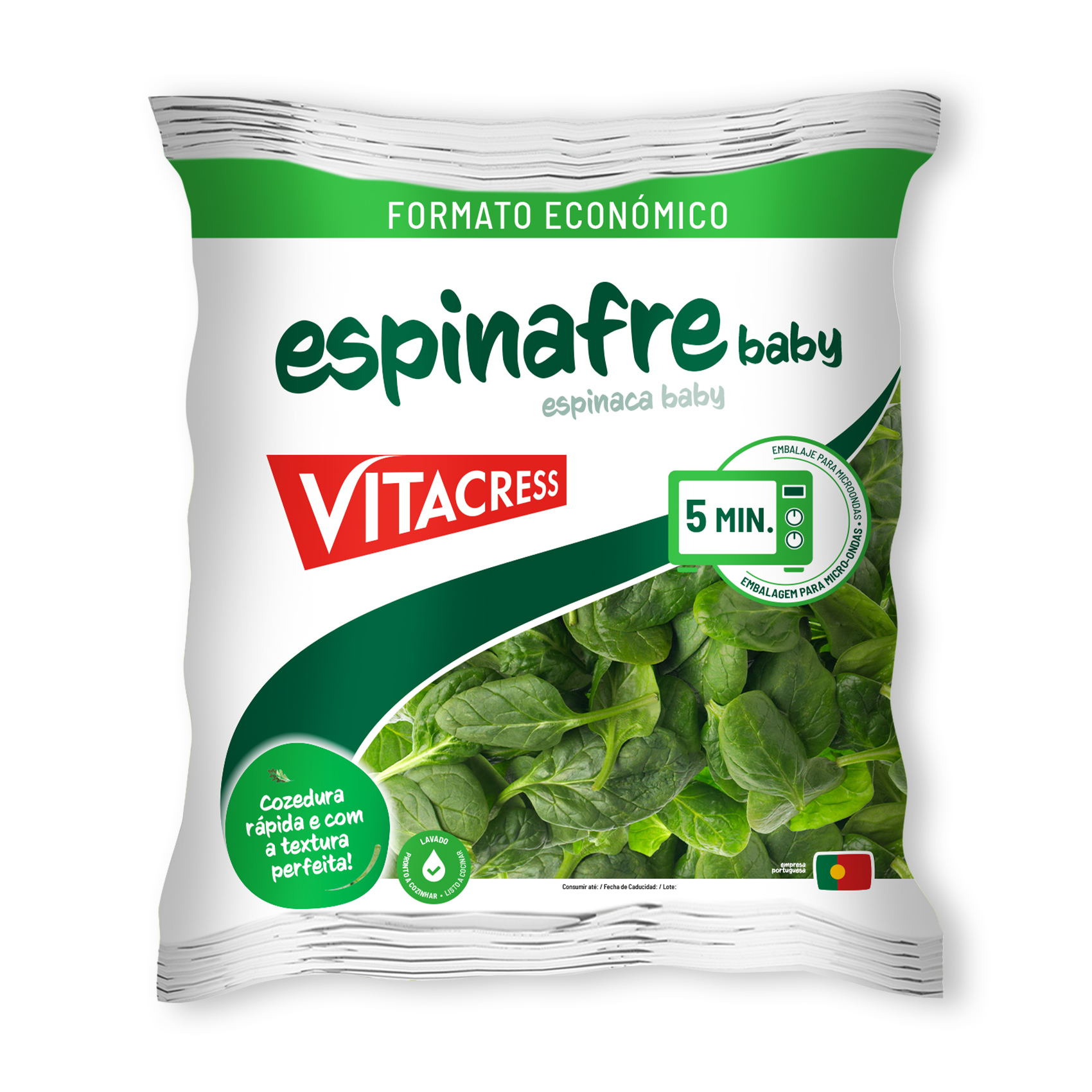 With microwave-suitable packaging, they can be steam-cooked in just 5 minutes, helping to preserve their natural flavour and nutritional qualities. Ideal for salads, sautéed dishes, creamed spinach, pasta, omelettes or as a side for quick and balanced meals.