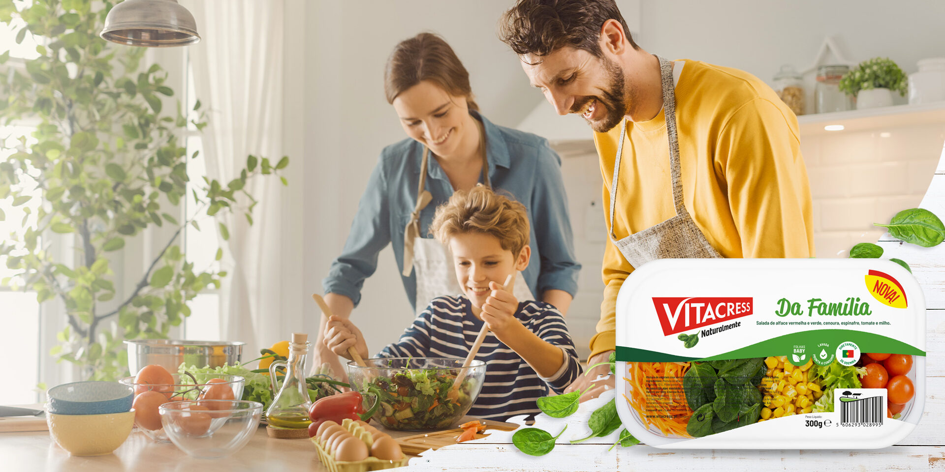 É diretamente da família da Vitacress, no Alentejo, que chegam os ingredientes desta nova salada: folhas baby de alface verde e vermelha, espinafres, tomate cherry, cenoura ripada e milho. Estando já lavada e pronta a consumir, à Salada da Família bastará juntar um tempero a gosto e misturar. Para os mais criativos, a novidade poderá ainda servir de base a outras receitas mais frescas e leves, ideais para os dias de verão, acrescentando outros ingredientes.