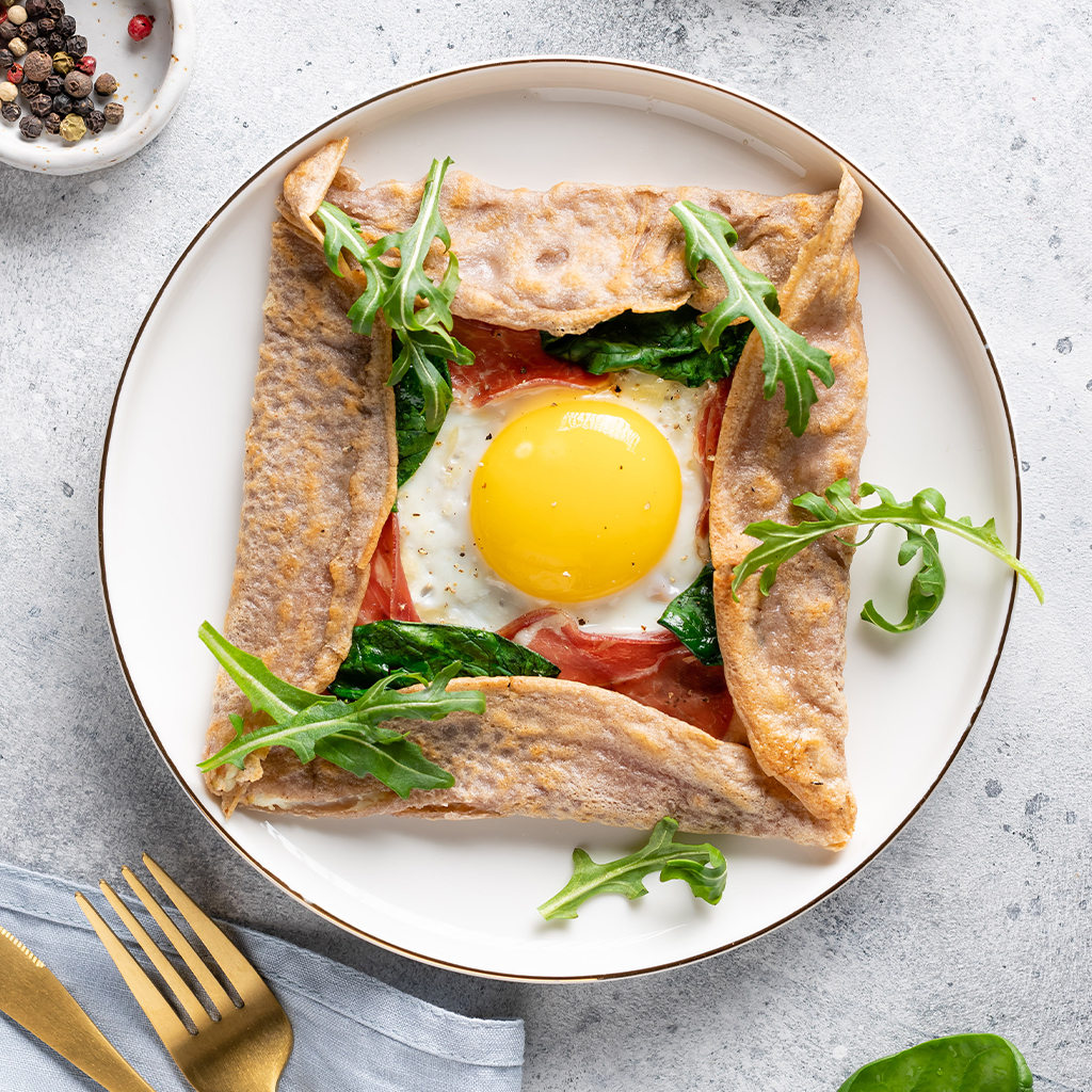 Wrap com Ovos, Rúcula e Espinafre